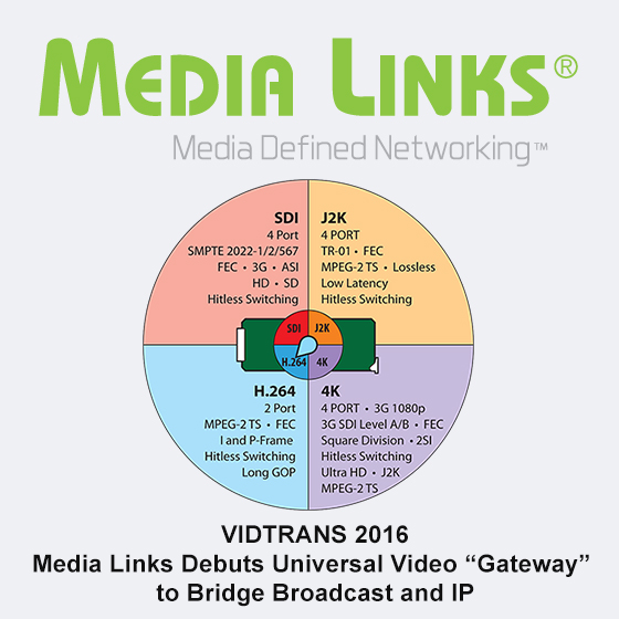 Builds a Studio without Limits – Solutions to be showcased at NAB 2016 Kawasaki, Japan – March 3, 2016: Media Global Links Co., Ltd., a 2014 Technology and Engineering Emmy® Award winner and the market leader in media over IP transport solutions announces that Chukyo Television Broadcasting, one of Japan’s leading broadcasters, has purchased its…