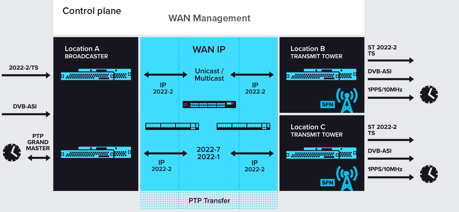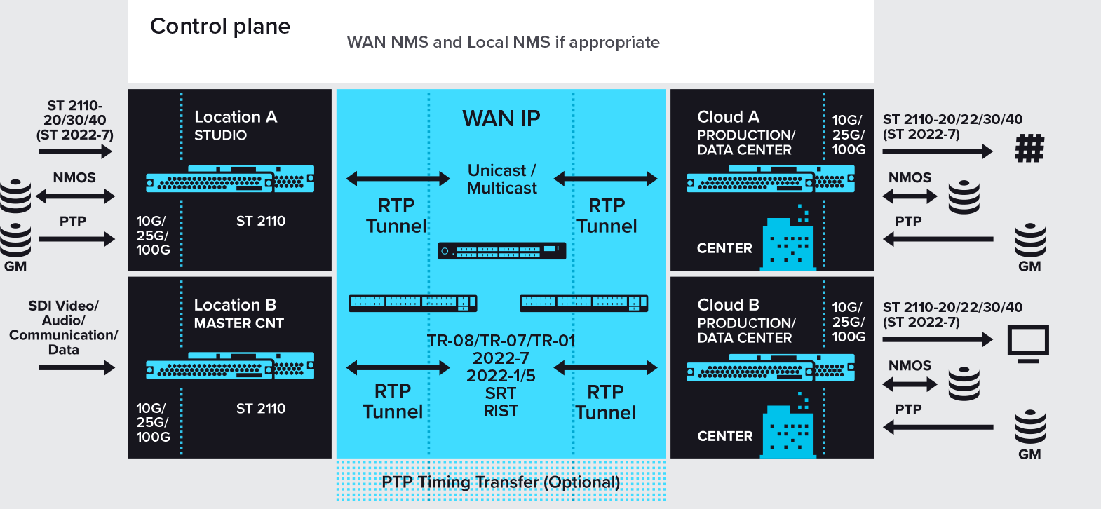 SDI Ground to ST 2110 / TR-08. Hand off to Cloud could be a stream from the WAN network trunk, from the Media Links / WAN provider hardware as the demarcation point, software receiver, ML SaaS opex or capex model, or AWS Elemental MediaConnect.